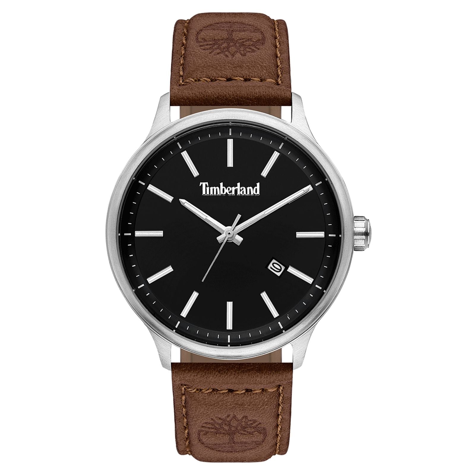 Timberland Men's Watch TBL.15638JS / 02 is a time only watch with leather strap. Quartz movement only time. 46 mm satin steel case. Black dial. Daters. Three spheres. Pressure crown. Mineral glass. Pressure- fit caseback. Brown leather strap