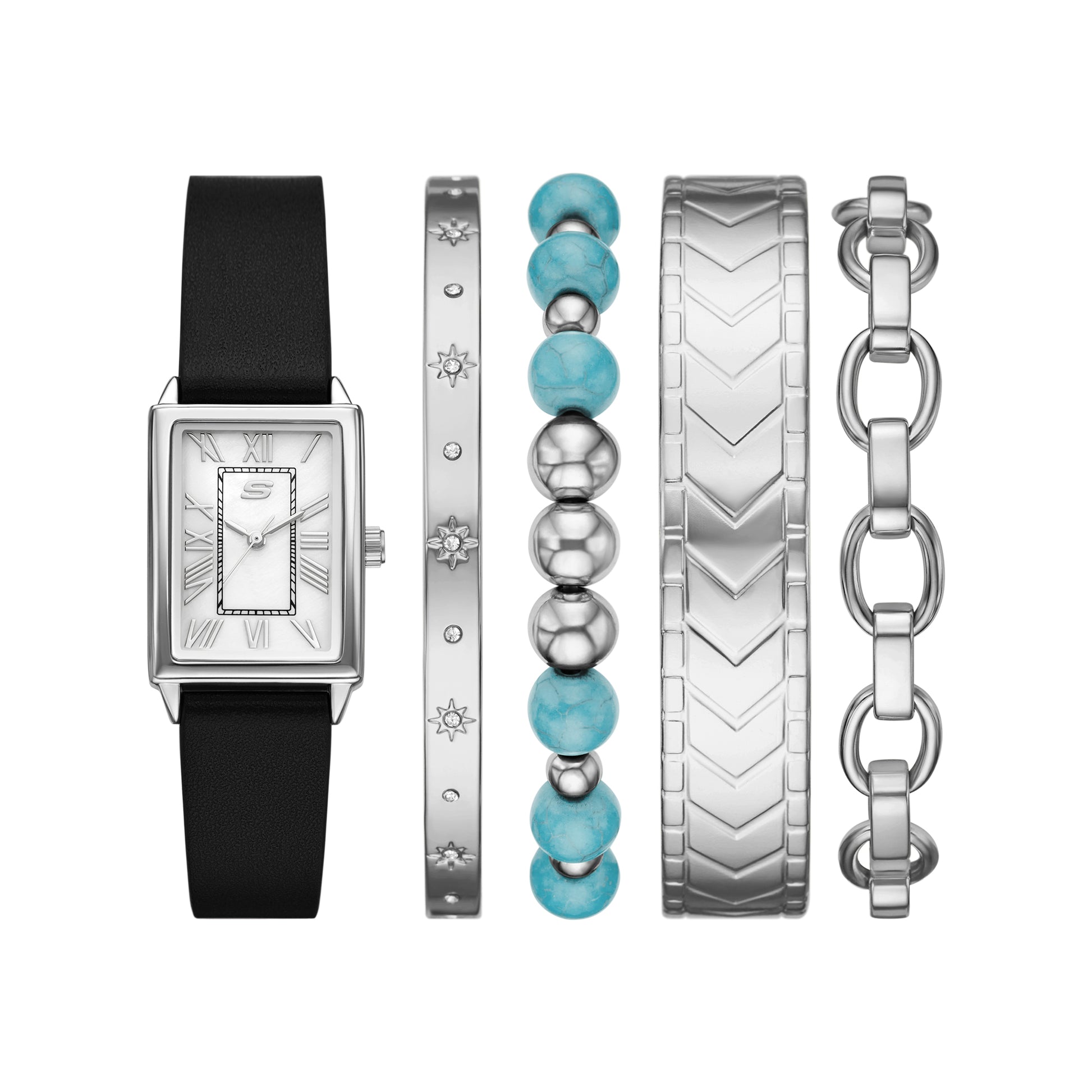 Skechers Casual Leather & Cuff Set Black Leather Strap Analog Watch SKC-SR9132