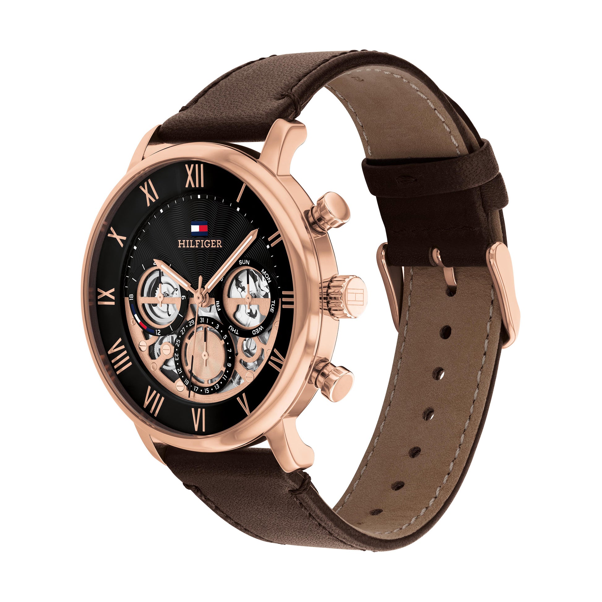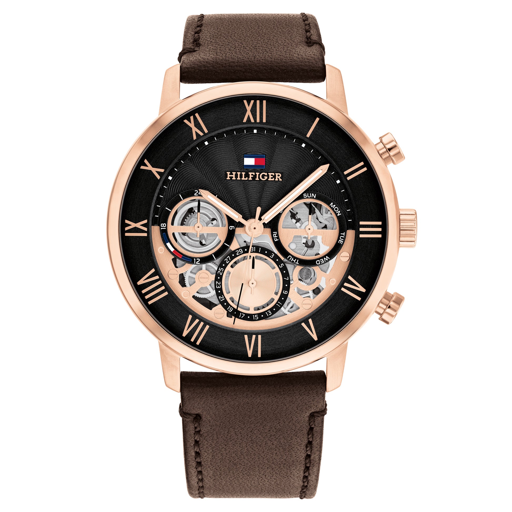 Made for the modern man who appreciates detail. Roman numerals surround the multi-layered open-heart movement, while the new Hilfiger branding keeps it classic. This Tommy dress watch will have you looking closer so that you don’t miss a second. Mesh bracelets, link bracelets, and leather straps. Multi-function, 44MM