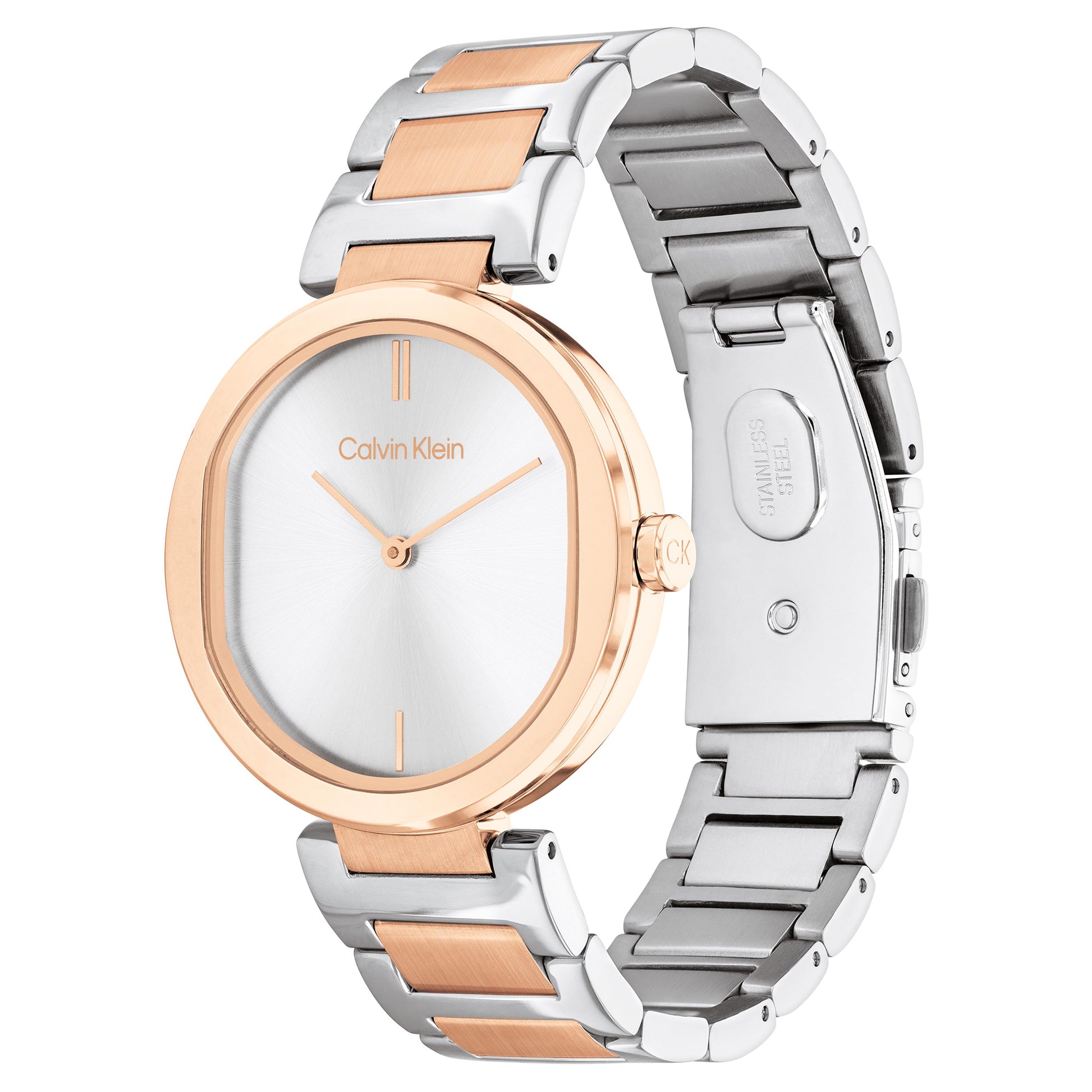 Calvin Klein Sensation Silver and Rose Gold Stainless steel Bracelet Analog Watch CK-25200251